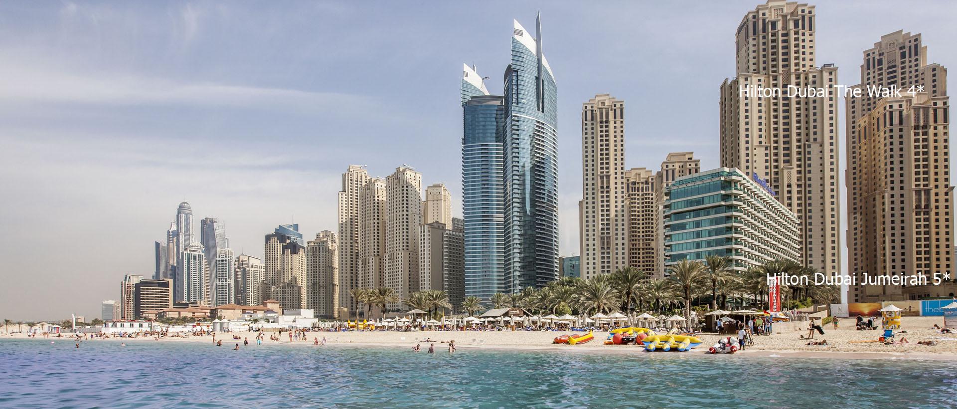 Отель Hilton Dubai The Walk 4* – это стильное 46-этажное здание, соединённое мостом с ещё одним отелем, пятизвёздочным главным корпусом Hilton Dubai Jumeirah Beach 5* . Гости могут пользоваться услугами обоих отелей – отдыхать в кафе и ресторанах, расслабляться в SPA, сводить детей в детский клуб Kidz Paradise, позаниматься в тренажёрном зале.